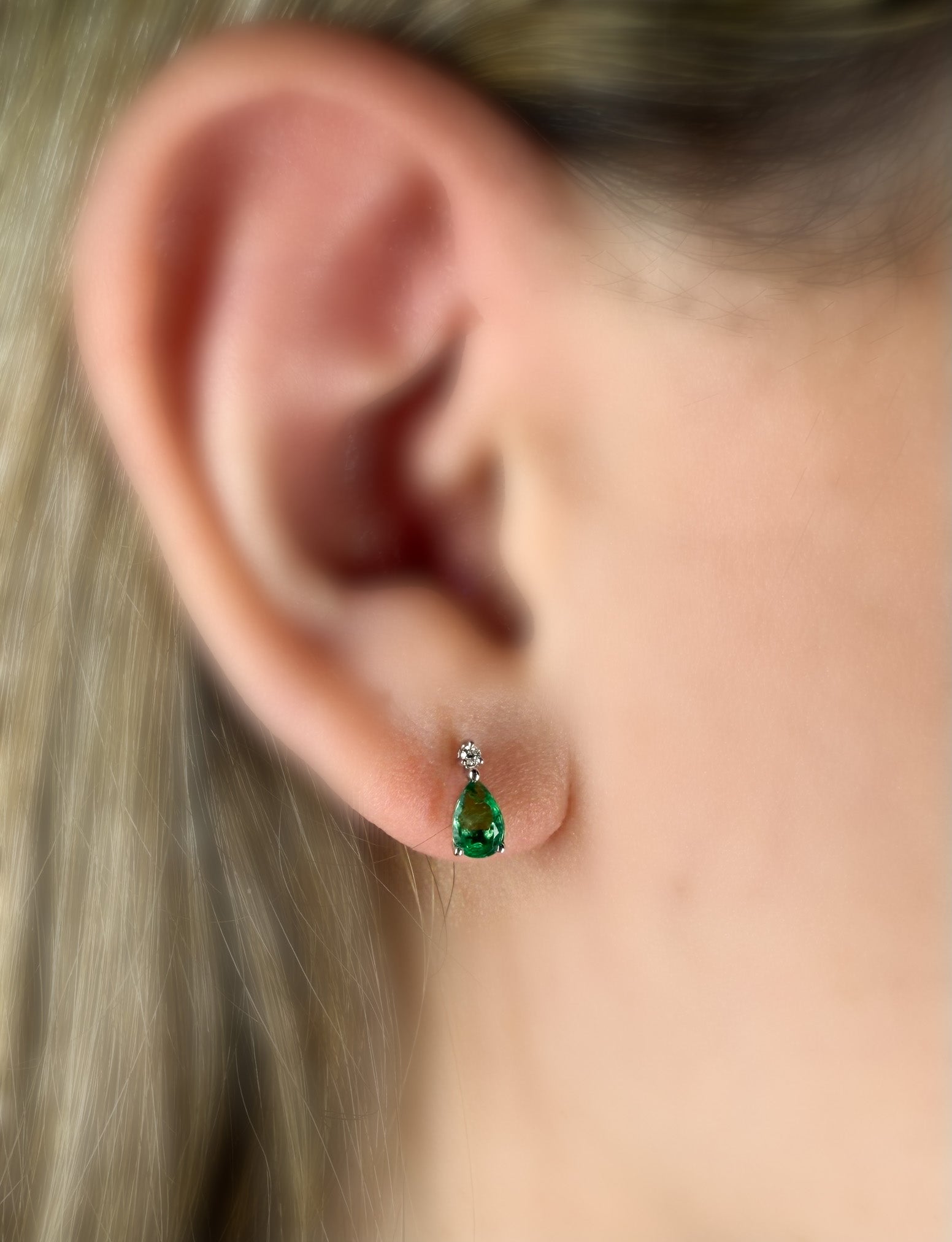 Pear-Shaped Emerald and Diamond Earrings in 14K Gold