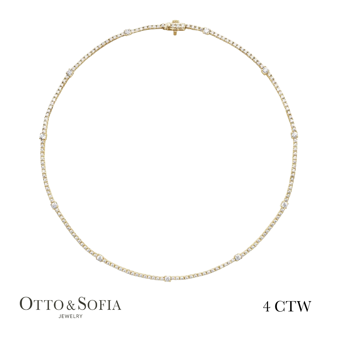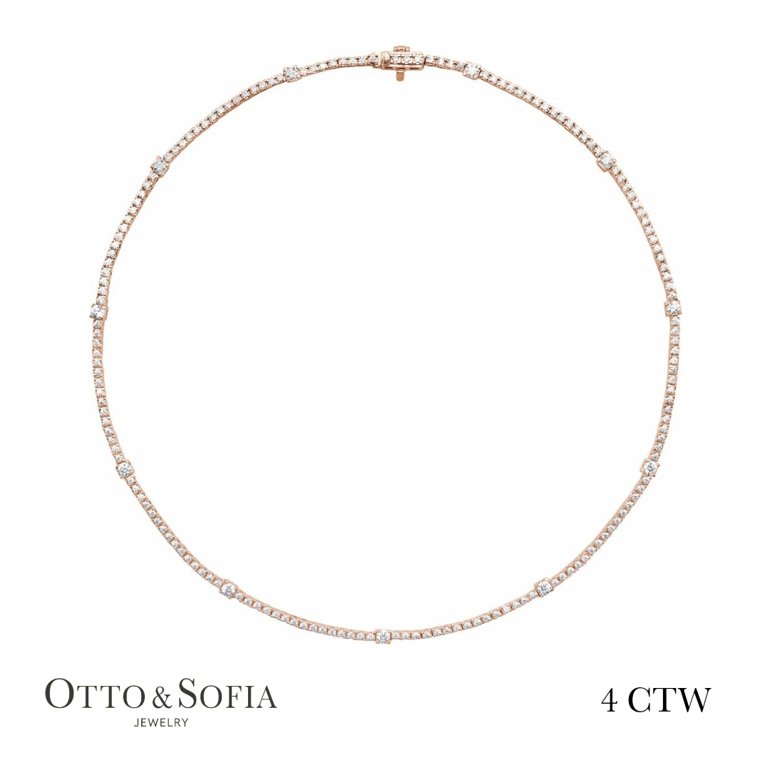 Station Tennis Necklace - Lab-Grown Diamond 16" Necklace in 14K White, Yellow, or Rose Gold (4 CTW)