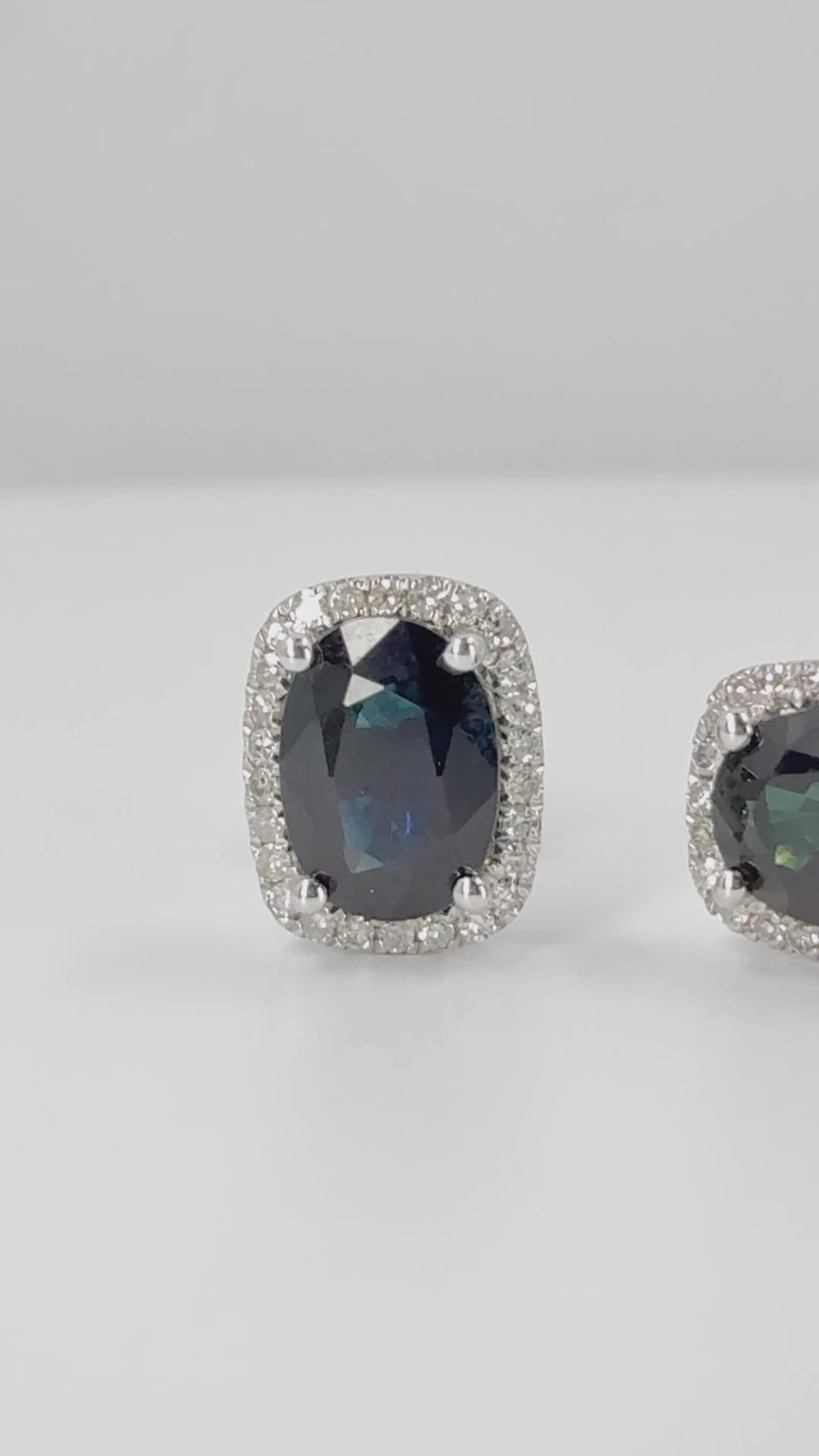 Elegant and timeless, these oval sapphire studs are framed by a halo of sparkling diamonds, beautifully set in 14K white gold. The deep blue sapphires radiate classic sophistication, while the diamond accents enhance their brilliance. Perfect for adding a touch of refined luxury to any look.