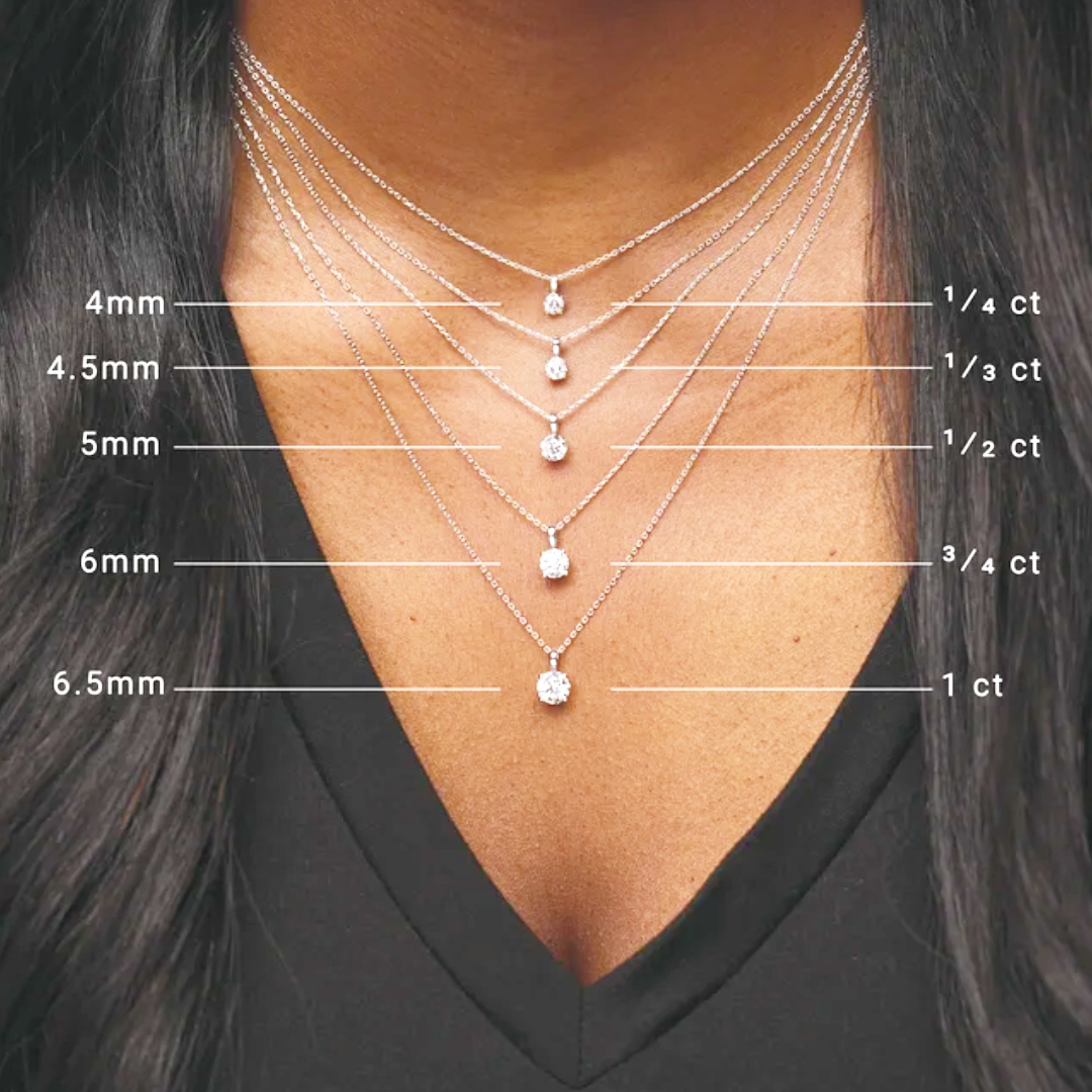 A timeless classic, this solitaire diamond necklace showcases a brilliant round diamond in your choice of natural or lab-grown, secured in a refined four-prong setting. Available in sizes from 1/3 to 2 carats, it’s crafted in 14K white or yellow gold and suspended from a delicate chain. Elegant, versatile, and radiant, it’s the perfect piece to wear every day or for life’s most special moments.