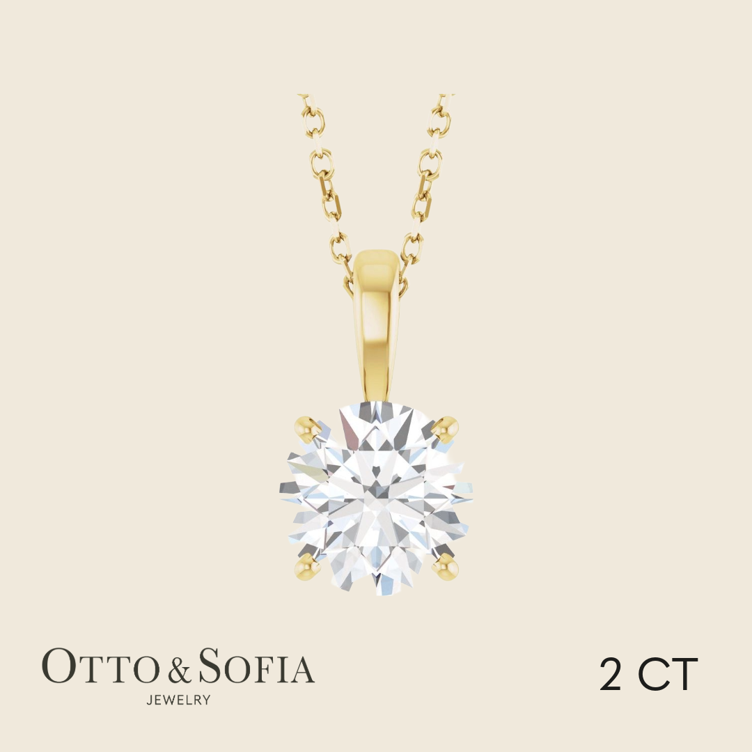 Solitaire Diamond Necklace in 14K White or Yellow Gold (1/3 to 2 CT, Natural or Lab-Grown Diamond)